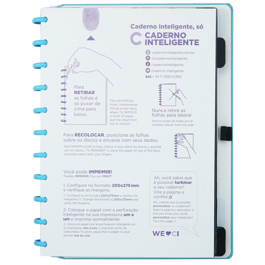 Uma das maiores vantagens do caderno de discos é poder colocar tudo o que você precisa e deixá-lo ainda mais incrível. O Caderno Inteligente® All Blue é perfeito para usar na escola, na universidade ou até mesmo em casa para anotar suas tarefas, criar listas e usar da maneira que desejar, com a facilidade de retirar e colocar folhas e outros acessórios de acordo com a sua necessidade, através de suas discotecas.