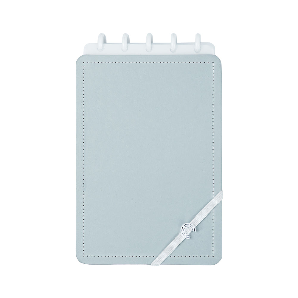 A capa cinza com acabamento elegante e o elástico na transversal não só adicionam um toque de modernidade, mas também mantêm suas anotações seguras e bem organizadas.