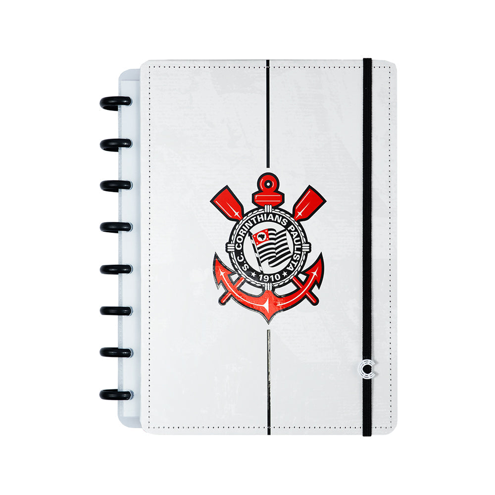 Com capa exclusiva BRANCA com as cores características do time e discos e elástico preto com acabamento em high print branco e verniz, ele é o caderno do Corinthians que você sempre sonhou em ter! E tem mais: essa edição especial também vem com selo oficial, folha de adesivos, folha exclusiva com a evolução dos escudos,  biografia e folha de escalação preta e branca, 4 divisórias, folhas pautadas personalizadas oficiais do clube e 20 folhas lisas para impressão!