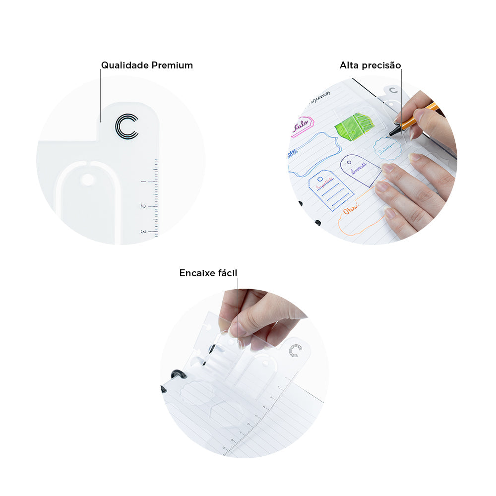Além de tudo isso, ela também pode ser utilizada como uma régua comum, marca páginas e, claro, ela encaixa nos discos do CI!